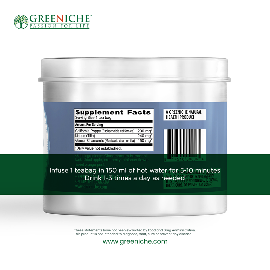 Wind down from a long day with a delicious blend of natural, herbs that gently, yet effectively, ease you into relaxation. Ease stress and reduce restlessness for better sleep with this calming and soothing tea. Explore this warm and comforting blend of beneficial herbs and flavourful fruits.