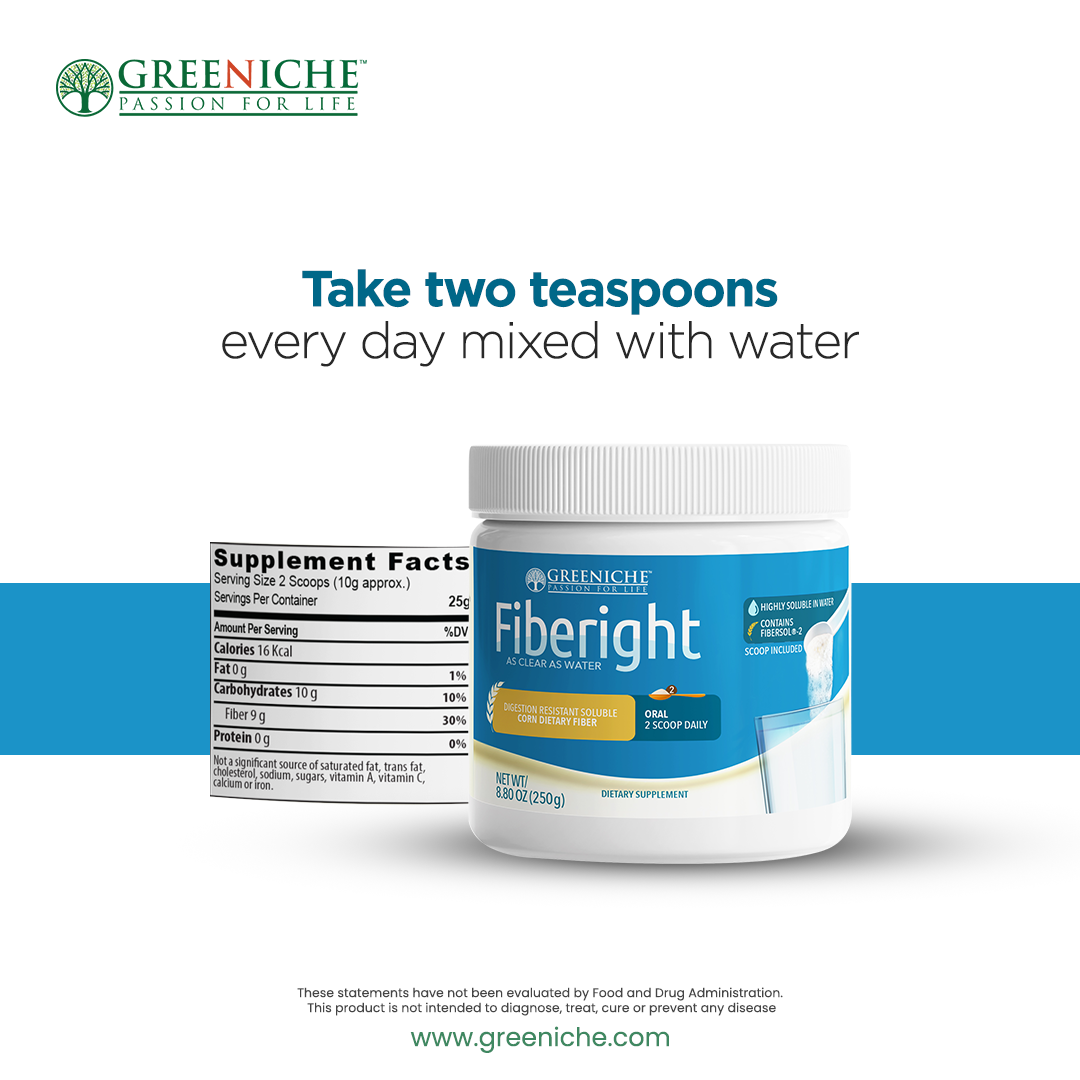Fiberight, a Halal Certified all-natural, tasteless, and preservative-free fiber supplement, can be easily added to any liquid for cooking and baking versatility. It may help support intestinal regularity, relieve occasional constipation, gas, and bloating, and help manage post-meal hunger to maintain weight.