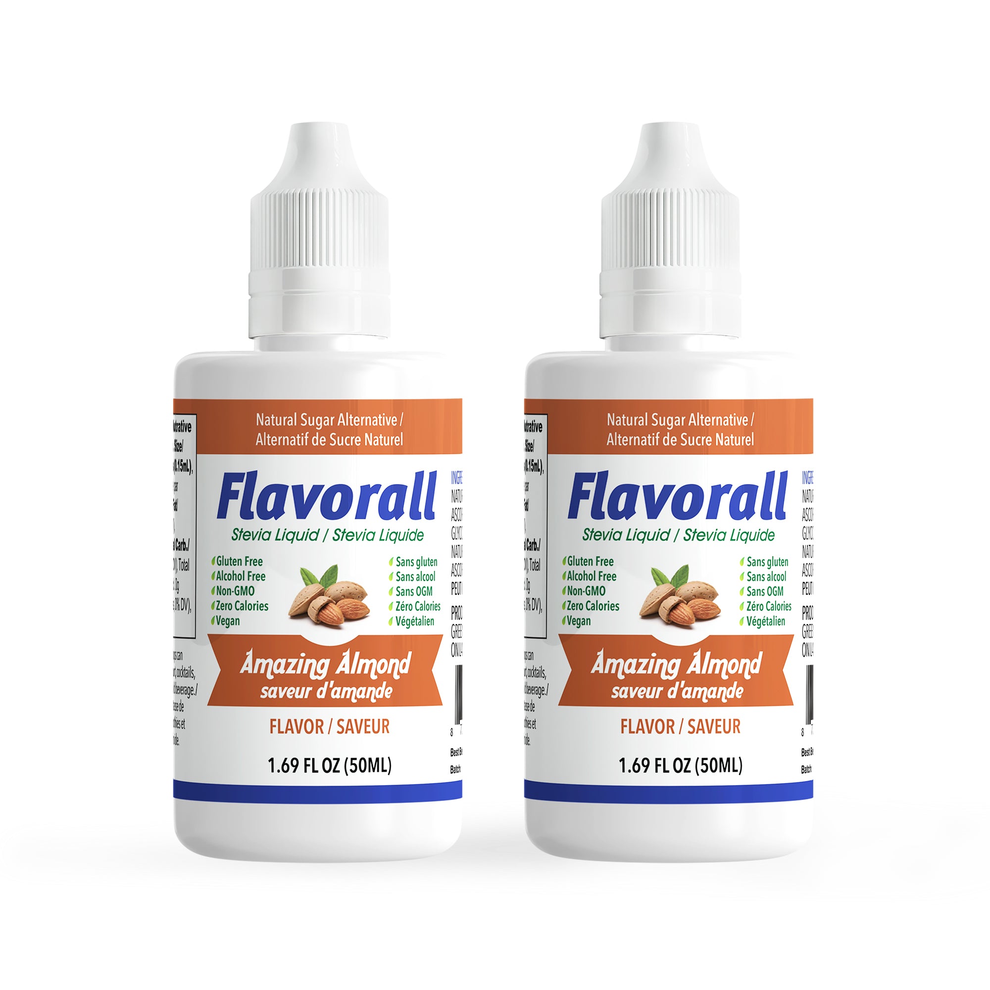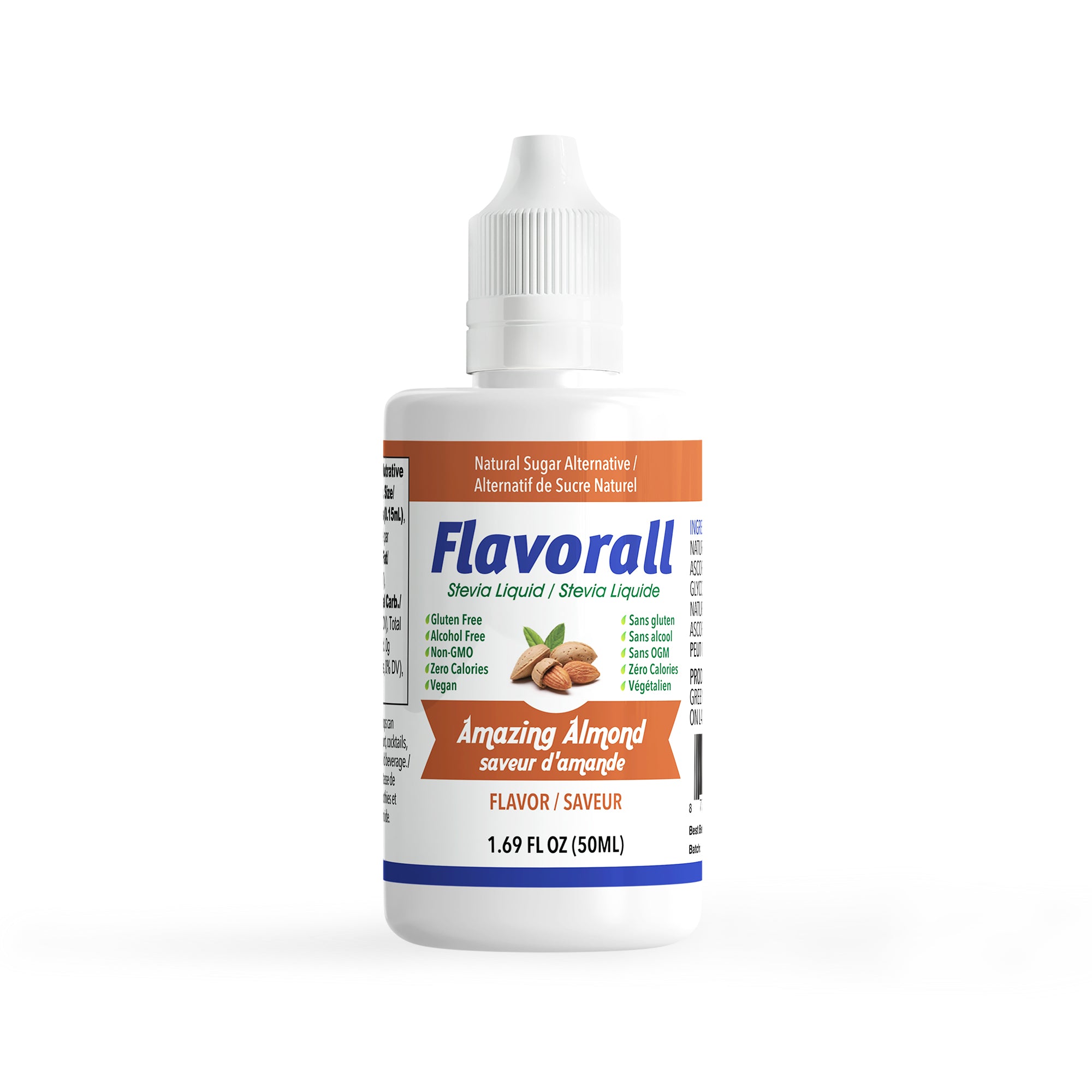 Deliciously nutty and subtly sweet almonds are packed with nutrients and taste great in sweet and savory foods. If you don’t feel like chopping or crushing them we've got the perfect alternative: Flavorall Amazing Almond liquid sweetener. The nutty flavor and aroma of almonds in this sweetener is very much on point. Other than that there are zero calories and gluten in it. It's Non-GMO, non-alcoholic, and diabetic friendly. Just a couple of drops for your food or drinks and you’ll be good to go! Pack Size: 50ml.