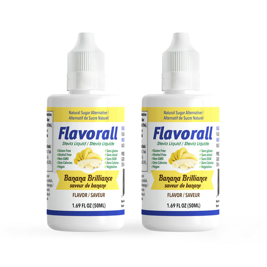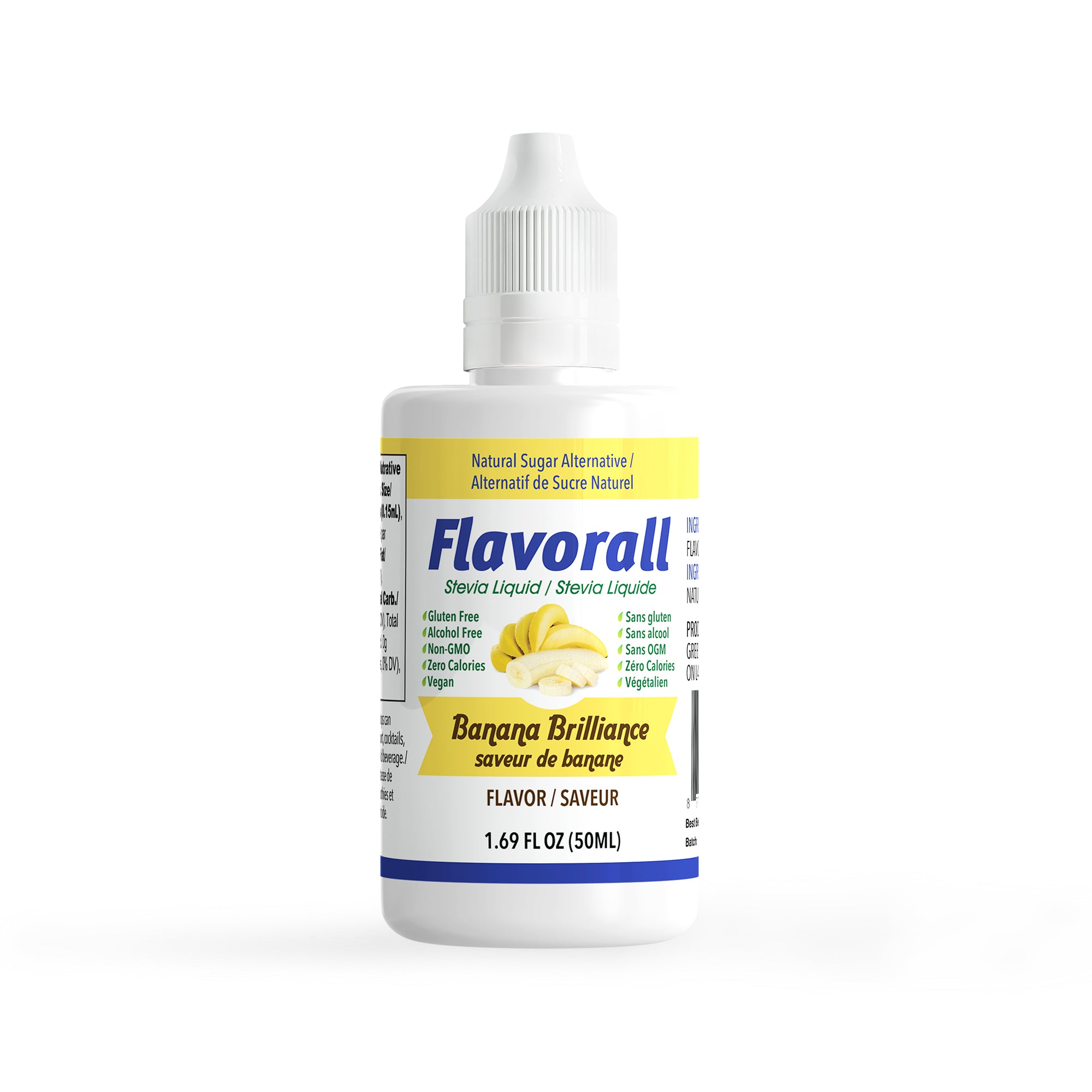 Adding tons of sugar to your banana bread or banana-flavored drinks won’t give you any healthy results. Instead of white sugar, a convenient and simple solution is our Flavorall Banana Brilliance liquid sweetener. Since it is made from all-natural ingredients, you can expect zero artificial flavourings. Our banana liquid sweetener is calories and gluten-free, Non-GMO, non-alcoholic, and perfectly suitable for diabetic patients. With just a couple of drops in your drinks and desserts, you get the sweet taste of bananas and their health benefits as well. Pack Size: 50ml.