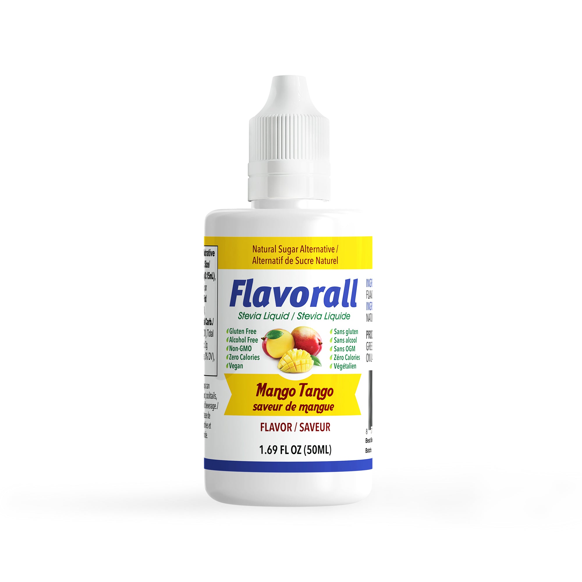 Flavorall Mango Tango liquid sweetener is just the thing you need in your life. You get the flavoring of fresh mangoes and can make your milkshakes or juices taste the same. It is Non-GMO, halal, calorie, gluten free, and best of all, it's diabetic friendly! Switch to this healthy and all-natural mango sweetener now! Pack Size: 50ml.