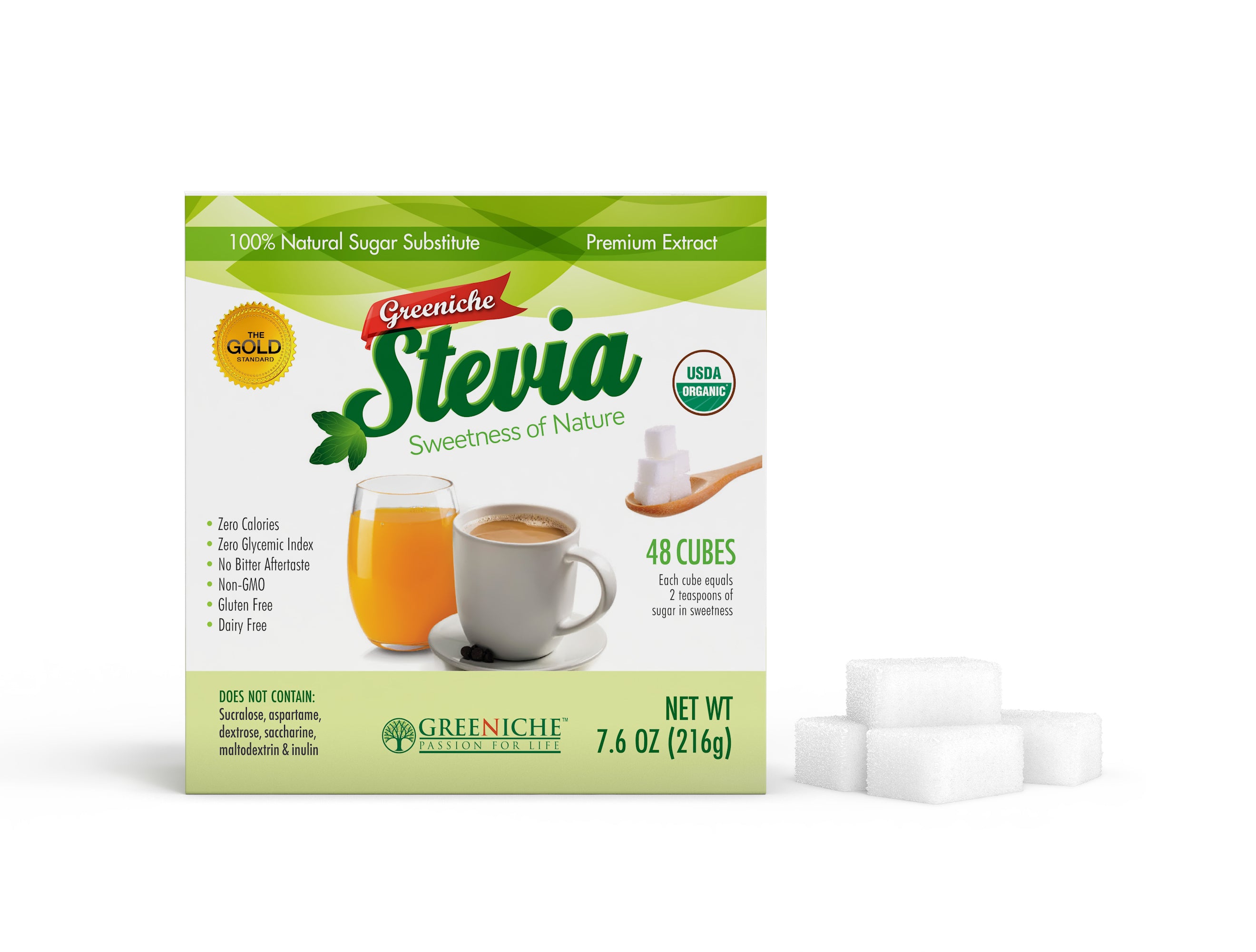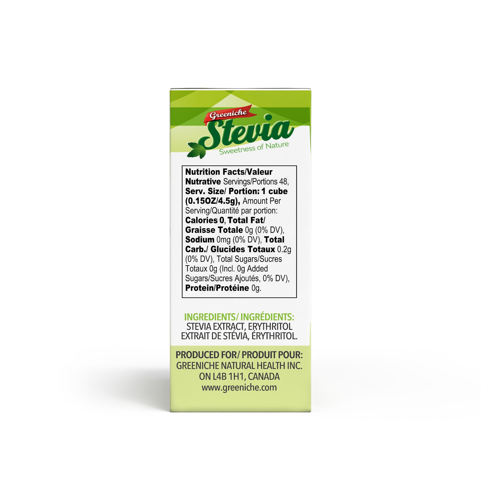 The Greeniche Stevia Cubes are an all-natural, calorie and carb-free sweetener with a glycemic index of zero. It is the perfect sugar substitute for those living with diabetes or just looking to cut down on their sugar consumption. Stevia is extracted from the Stevia rebaudiana herb with new technology that can isolate the Reb-A sweet component and eliminate the bitter component, Reb-B. This results in a delicious and versatile sugar replacement that is sweeter per unit weight than granulated sugar, and is the only commercial sweetener that won’t intensify sugar cravings. Unlike other brands, our Stevia doesn’t contain unnecessary additives and is made with an unprecedented 99.8% Reb-A. The cubes are perfect for cooking or baking your favourite desserts guilt-free! Pack Size: 48 Cubes / 216g.