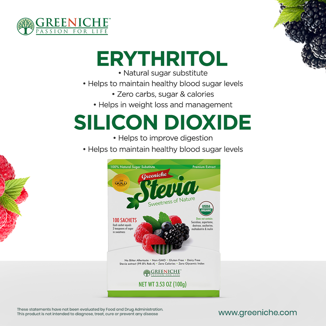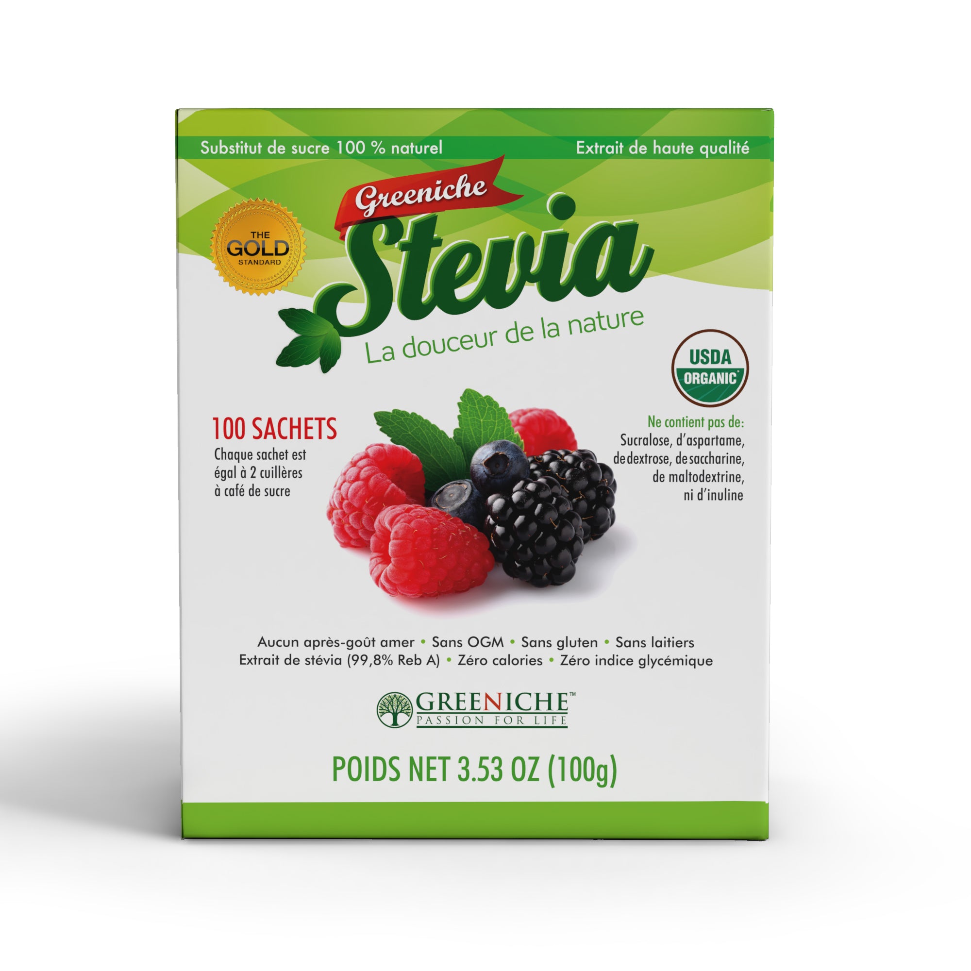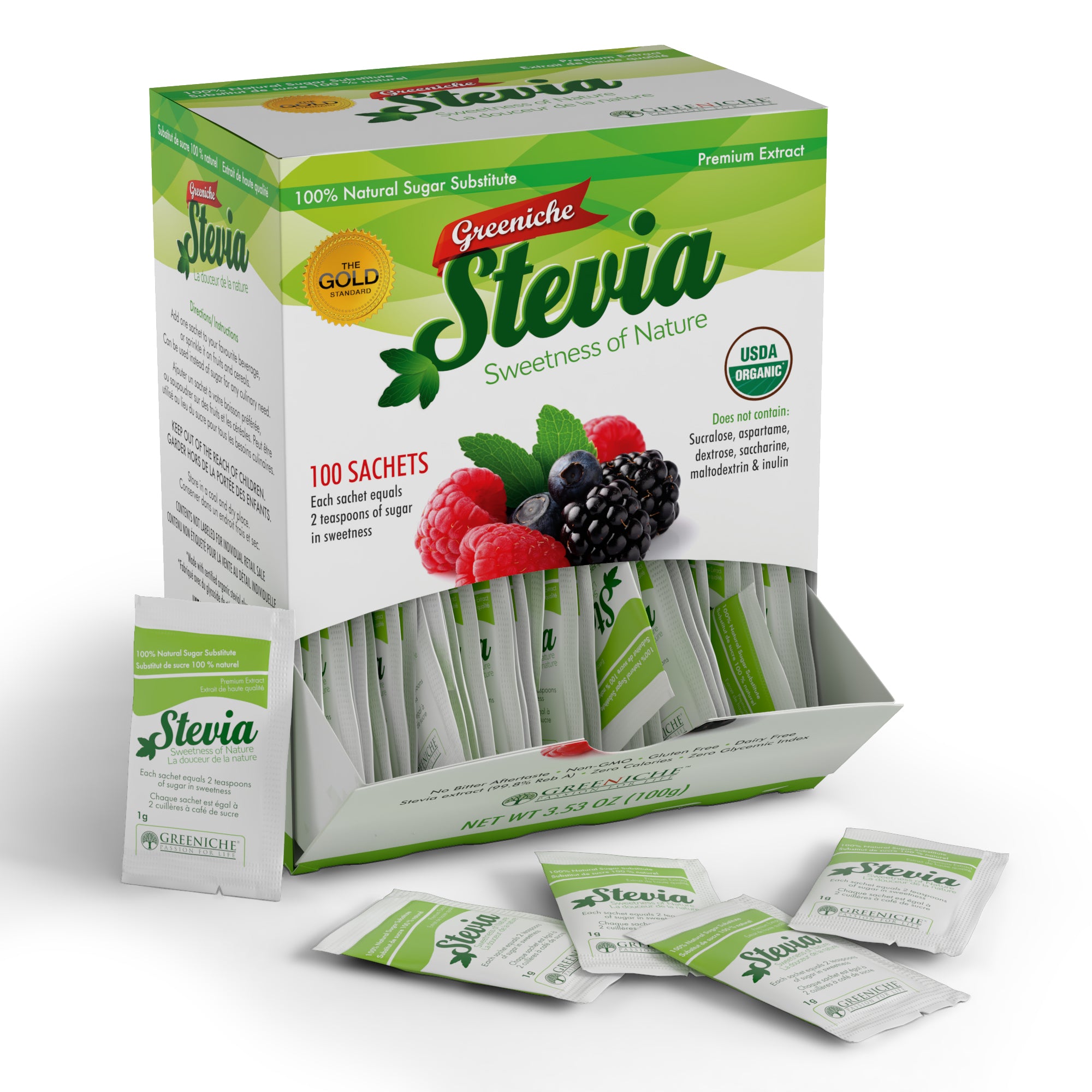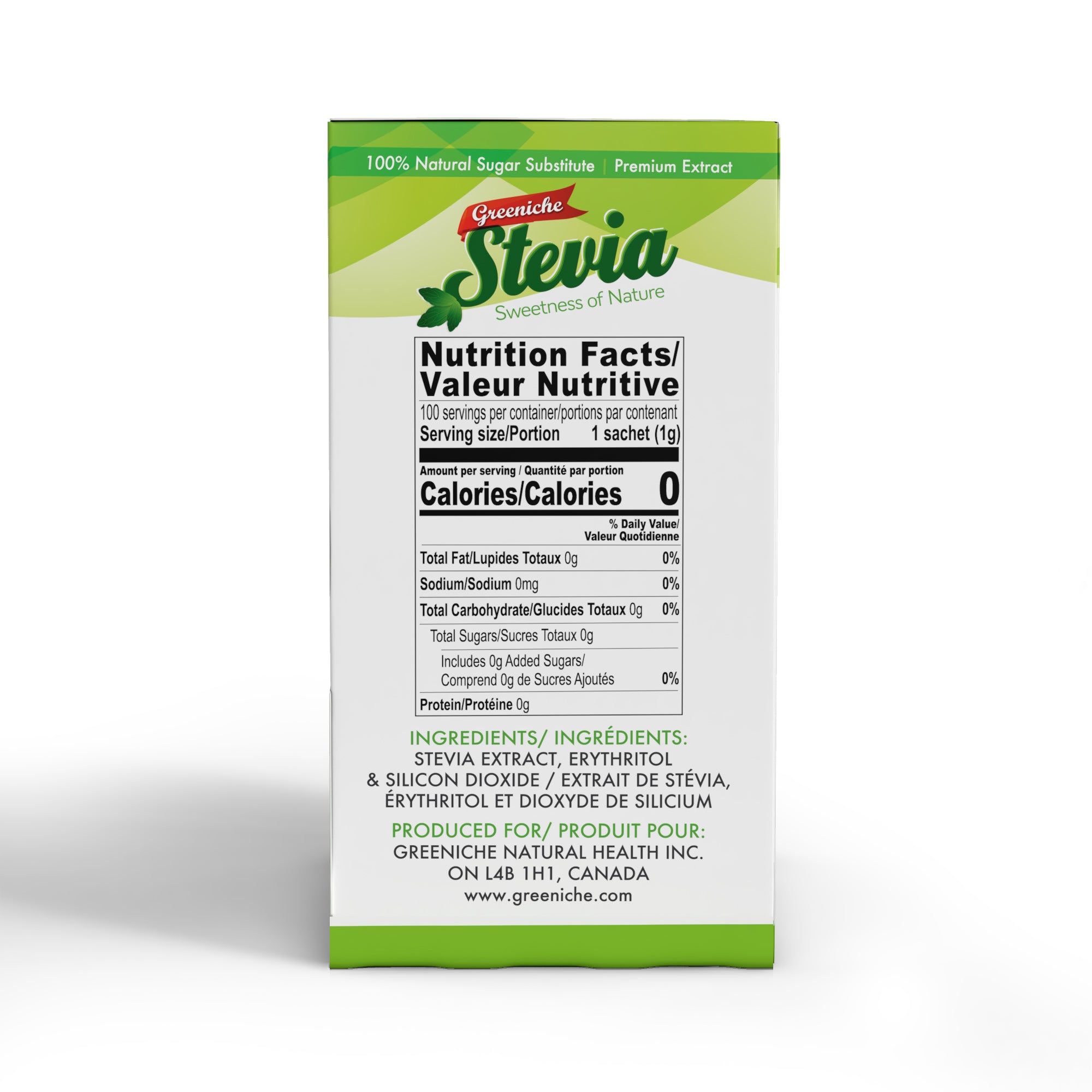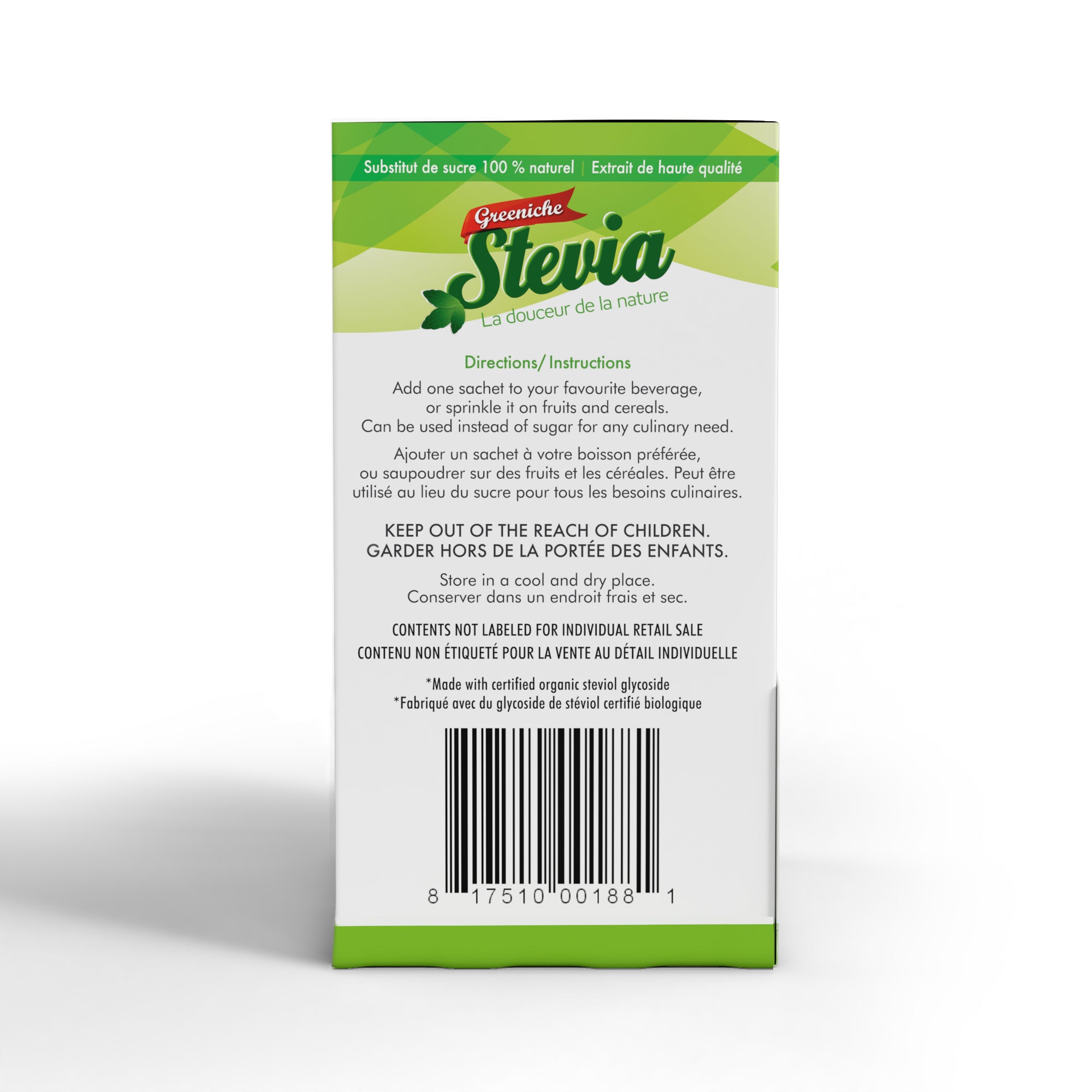 Discover the sweetness of Greeniche's Halal Certified Stevia Sachets, an all-natural, calorie and carb-free sweetener with a glycemic index of zero. Extracted from the herb Stevia rebaudiana using advanced technology to isolate the Reb-A sweet component while eliminating the bitter Reb-B component, our Stevia offers a delightful and versatile sugar replacement, sweeter per unit weight than granulated sugar. With an unprecedented purity of 99.8% Reb-A and free from unnecessary additives, our Stevia sachets are perfect for those managing diabetes or seeking to reduce sugar consumption on-the-go. Conveniently packaged for portability, they are ideal for adding to any hot or cold drinks or favorite foods, especially when dining out. Each pack contains 100 sachets, with each sachet equivalent to 1g of sweetness.