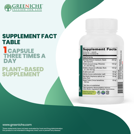 Greeniche Halal Certified Liver Health Support offers a natural supplement tailored to promote liver health and function. Our formula harnesses the power of Milk Thistle, a potent hepatoprotectant renowned for safeguarding the liver from harmful toxins and alleviating digestive disturbances. Protect your liver from potential risks associated with excessive alcohol consumption, sugar intake, and overweight BMI with Greeniche Liver Health Support.