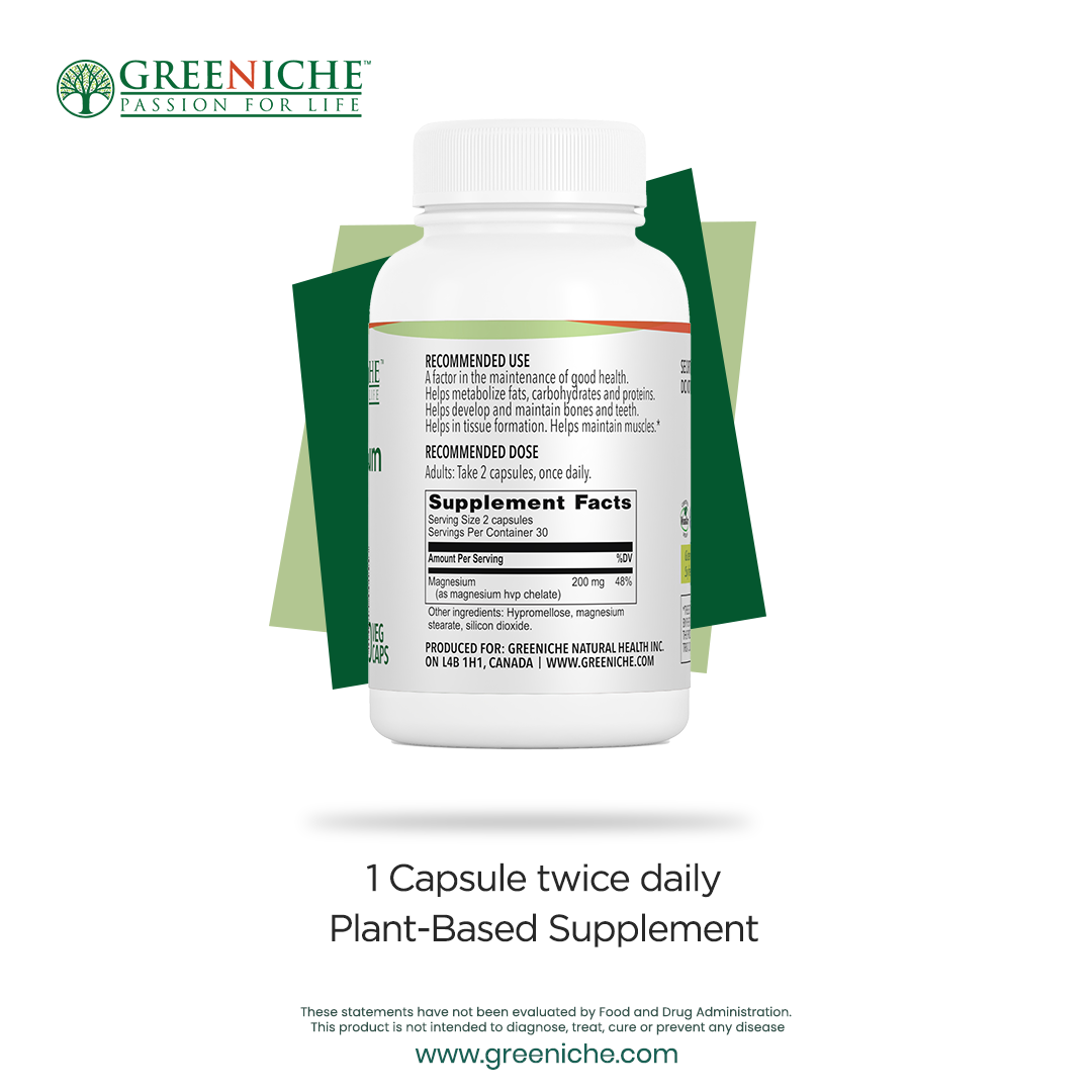 Experience the benefits of Greeniche's Halal Certified Magnesium Chelate, a natural supplement designed to aid in the metabolism of carbohydrates, proteins, and fats, while supporting healthy muscle, bone, and tissue development. Magnesium plays a crucial role in optimal cardiovascular, nervous, skeletal muscle, digestive tract, and uterine function.