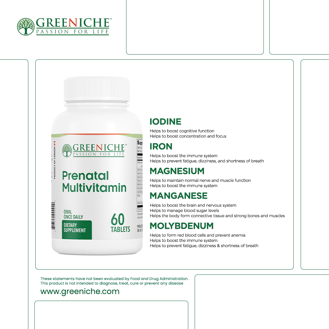 Give yourself and your baby the nutrients you need with Greeniche's Prenatal Multivitamin. This formula is specifically designed to support the health of pregnant and breastfeeding women.