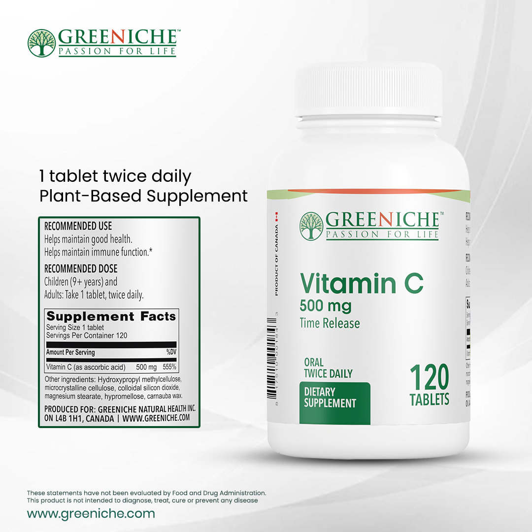 Greeniche Halal Certified Vitamin C supplement provides a natural source of this essential nutrient, conveniently packaged in easy-to-swallow, time-released vegan capsules, ensuring optimal absorption into the body. Harness the power of Vitamin C for immune support and overall health with our meticulously formulated supplement.